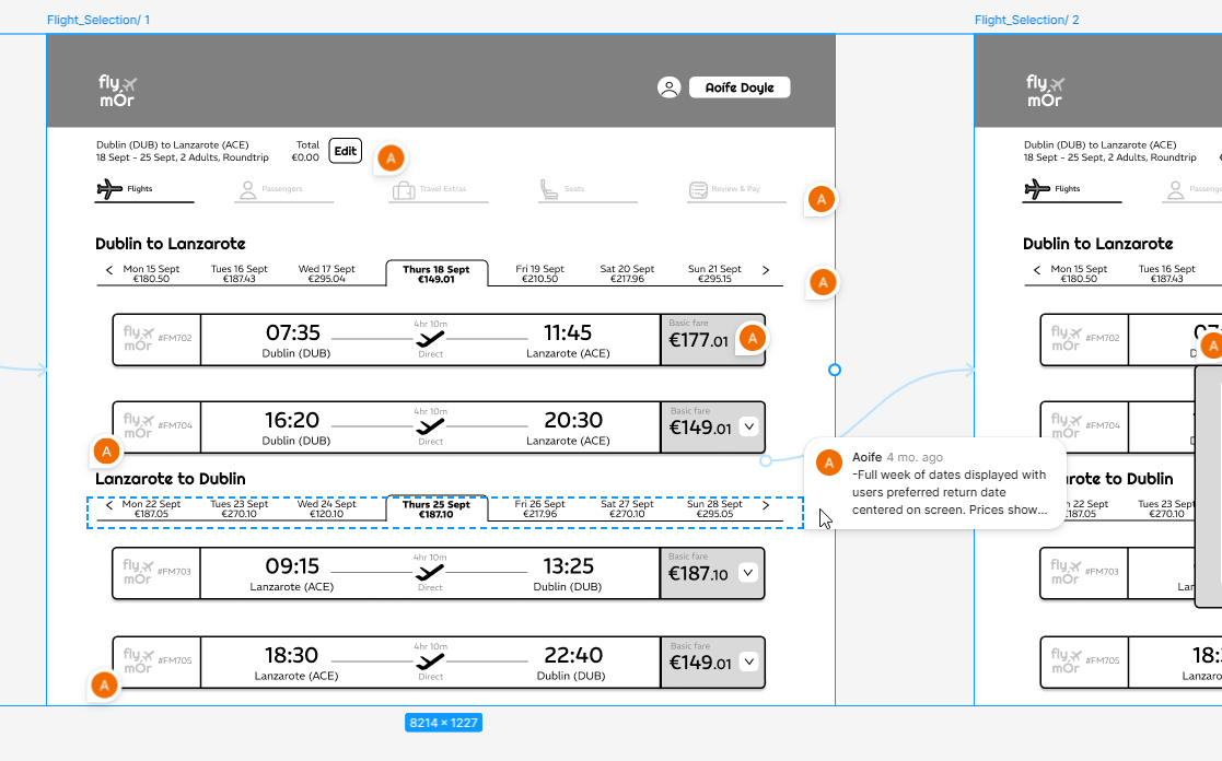 Building on the flow diagram, I designed detailed screen layouts and states to illustrate the user’s ‘happy path’ through the Fly Mór desktop app, ensuring that the design effectively addresses key user goals and resolves issues uncovered during research and analysis.