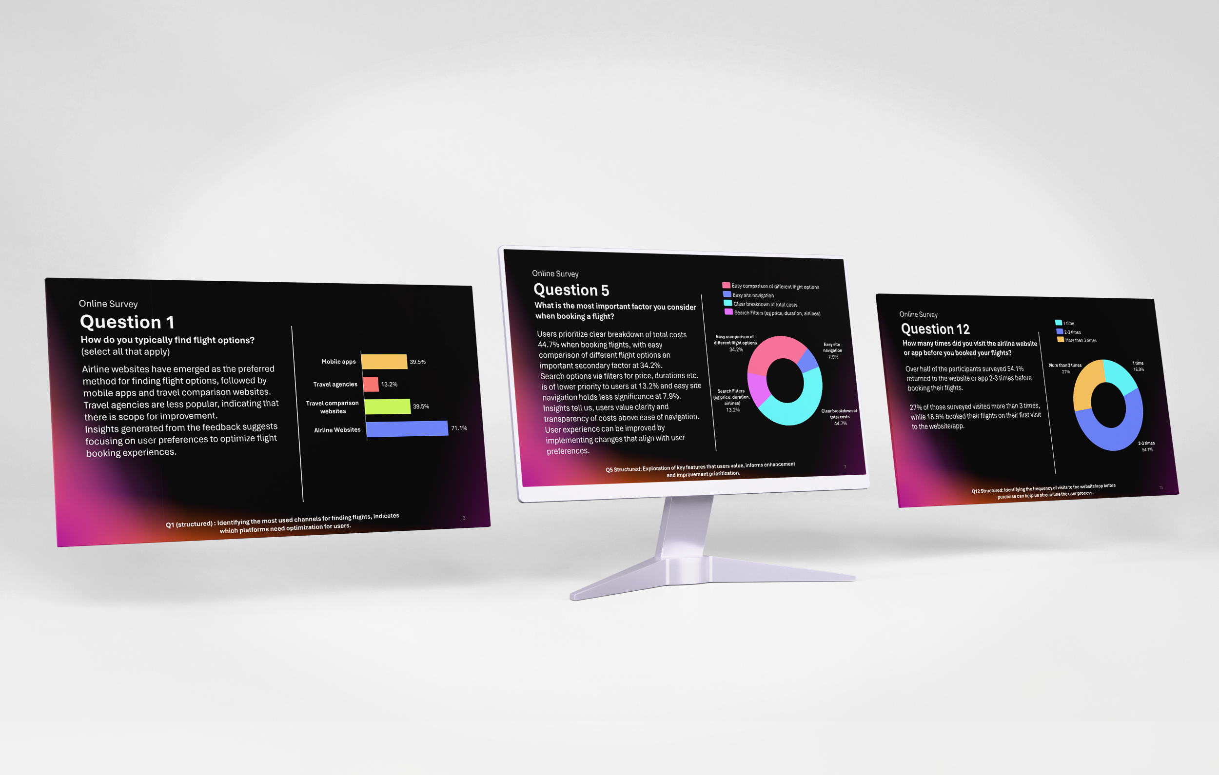The analysis revealed that users encountered friction across multiple touchpoints, with the flight search and selection process emerging as the most challenging and frustrating stage. These insights will directly inform the core focus areas for designing a more intuitive and efficient Fly Mór booking experience.